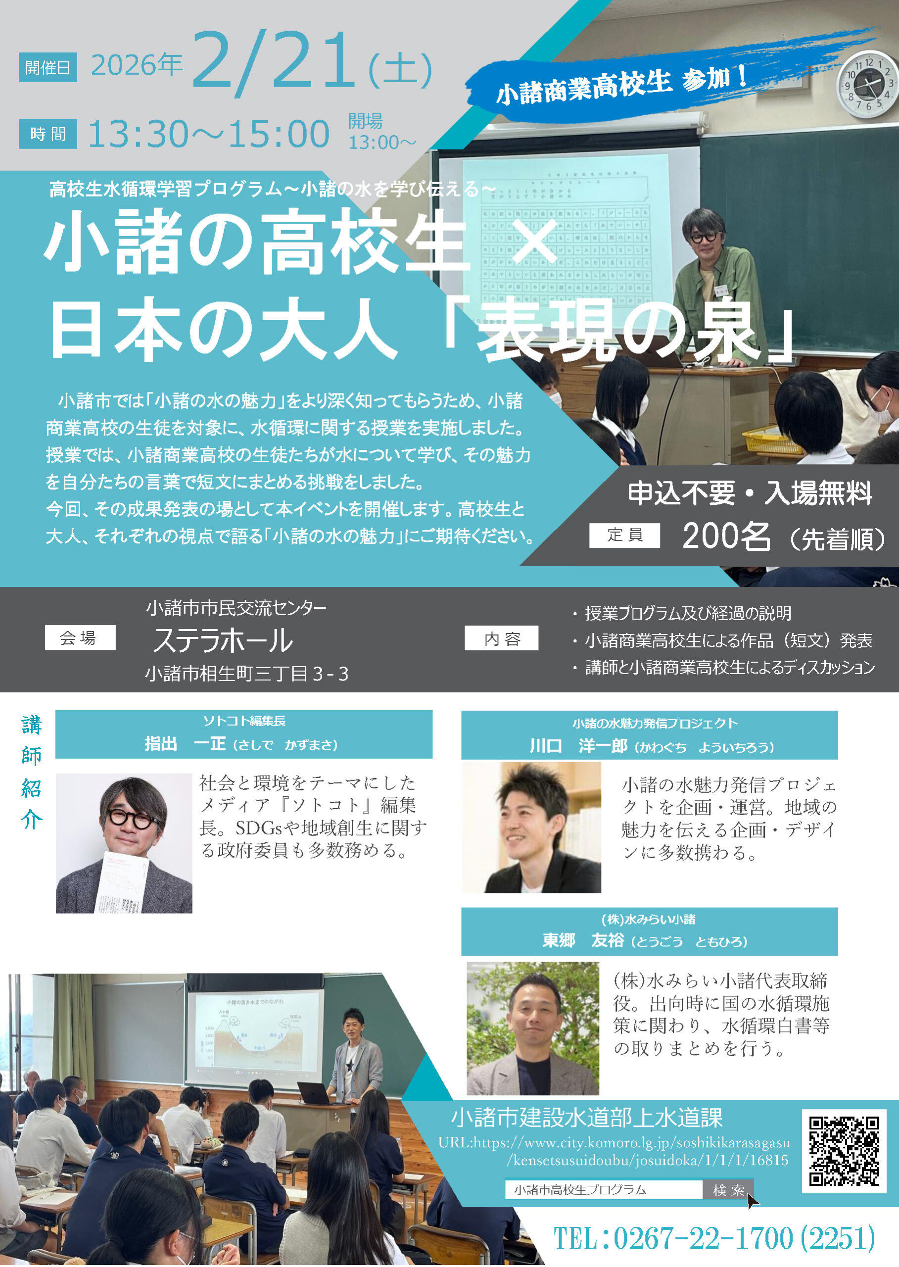 高校生 × 大人 それぞれの視点で語られる 「小諸の水の魅力」を、ぜひ会場でお楽しみください。